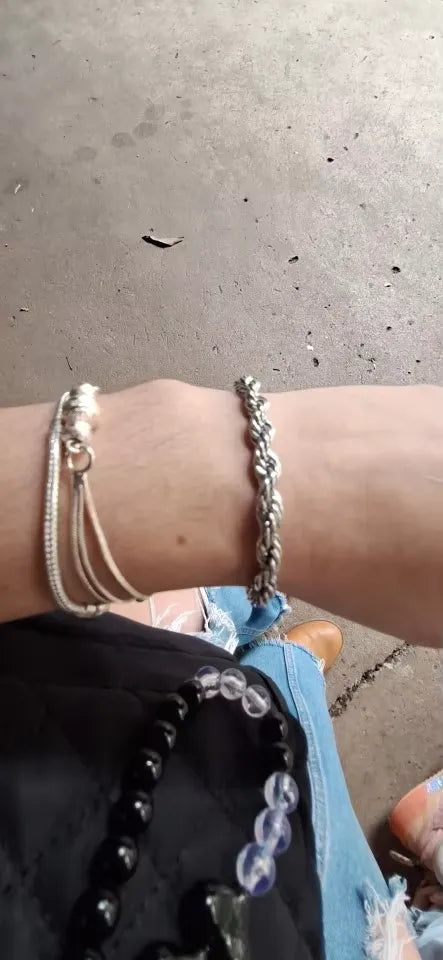 Contrairement aux autres, notre bracelet combine durabilité et élégance, offrant un éclat parfait qui améliore n'importe quelle tenue. Son design de chaîne en corde intemporel est inégalé en style, en faisant un accessoire incontournable.