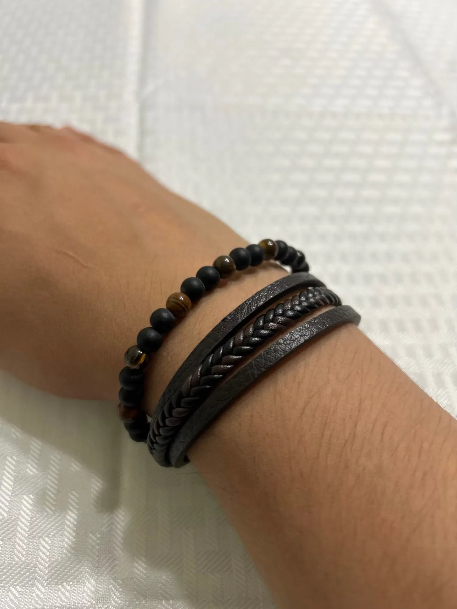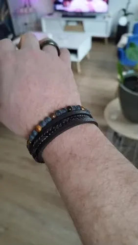 "J'adore ce bracelet ! Il est tellement stylé, et les perles œil de tigre ressortent vraiment ! J'ai reçu des compliments dès le premier jour où je l'ai porté.😊 Il s'enroule confortablement et s'accorde avec la plupart de mes tenues. Très bonne qualité aussi. Je le recommande vivement à quiconque cherche à améliorer son style !💪🔥"